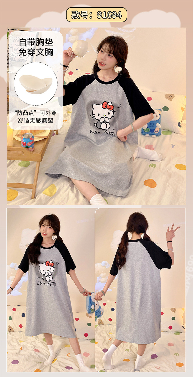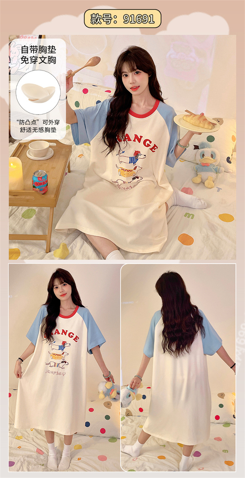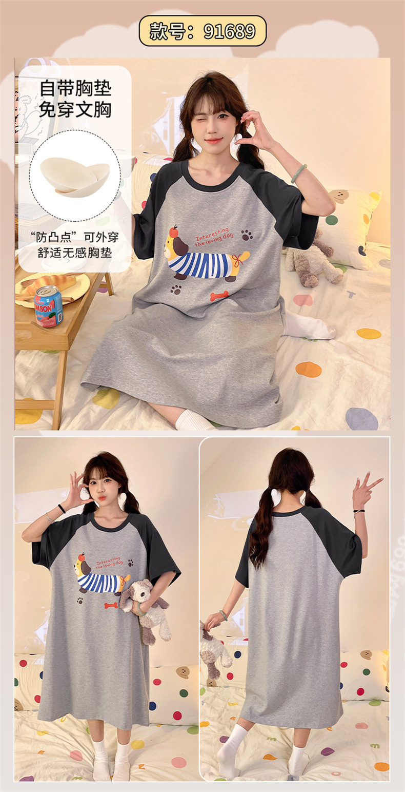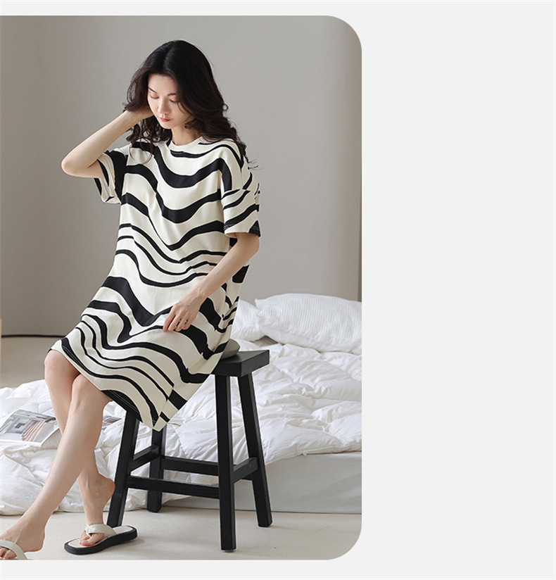 Vapetix M-XXL Women’s Summer Short-sleeved Crewneck Nightdress with Chest Pad New Arrival Striped Cartoon dress O