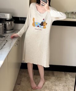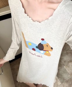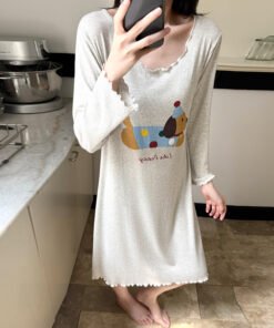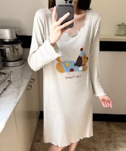 Vapetix M-XXL Xinbao (Autumn 80) Fall Medium-Length Loose Women’s Cute Sweet Cartoon Ribbed Groove Cotton Homecom