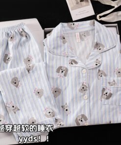 Vapetix M-XXL YMX—Live Spring and Autumn Long Sleeve Cloud Cotton Women’s Cute Cartoon Cardigan Print Home Dress