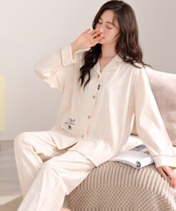 Vapetix M-XXXL Maternity Nursing Pajamas for Spring and Autumn – Women’s 6040 Pure Cotton Postpartum Nursing Cloth