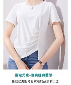 Vapetix M-XXXXL Women’s Short Sleeve Summer T-shirt 2025 with Pleated Design, Asymmetrical Top, Trendy and Stylish