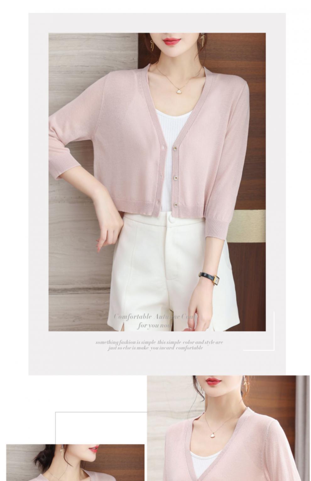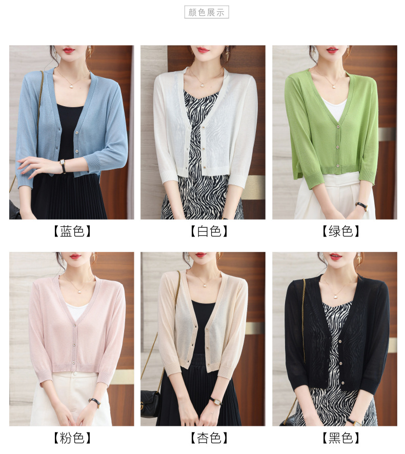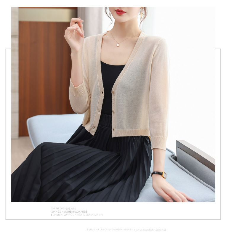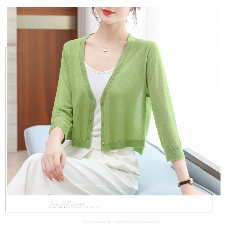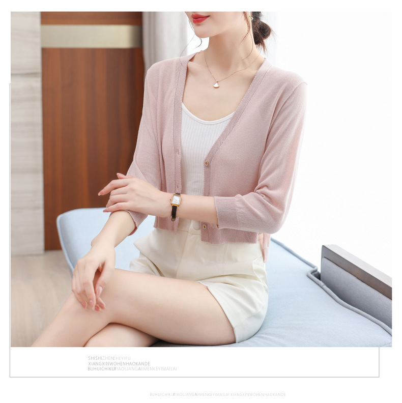 Vapetix One size fits all-One size fits all 2025 Summer Ice Silk Sunscreen Cardigan Women’s Thin Short Long-sleeved Loose Outer Shawl Air-condi