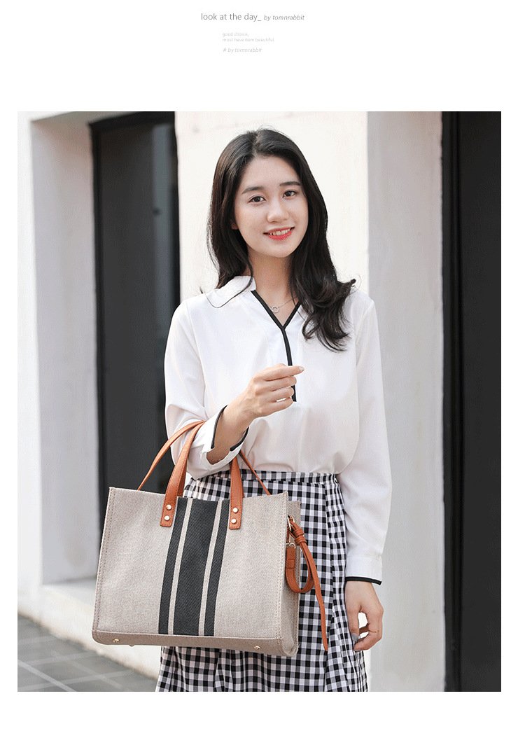Vapetix One size fits all-One size fits all Korean style women’s portable briefcase professional commuting striped simple shoulder large bag in