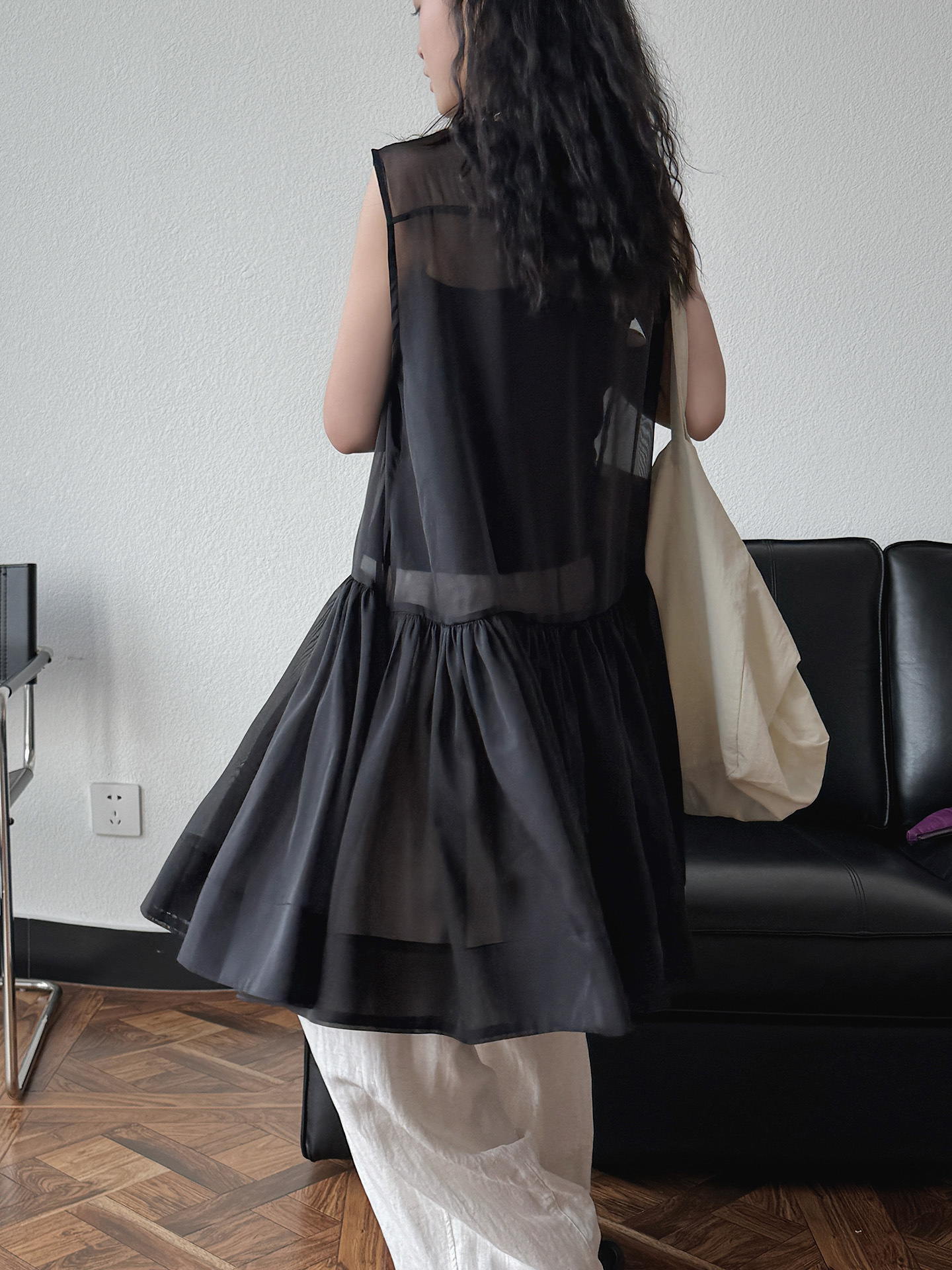 Vapetix One size fits all-One size fits all Lvu Summer New French Style Casual Sweet Silk Vest Dress Lightweight Comfortable Stacked Fluffy dre