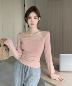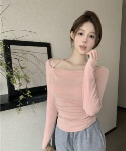Vapetix One size fits all-One size fits all Real shot ~ Slim design niche halterneck top, bottoming shirt, off-shoulder temperament, inner T-sh
