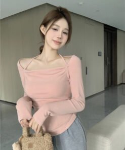 Vapetix One size fits all-One size fits all Real shot ~ Slim design niche halterneck top, bottoming shirt, off-shoulder temperament, inner T-sh