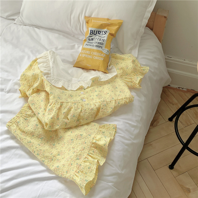 Vapetix One size fits all-One size fits all South Korea foreign trade ladies ins new plaid floral color matching V-neck pajamas short sleeve ho