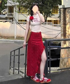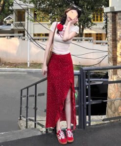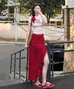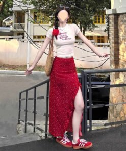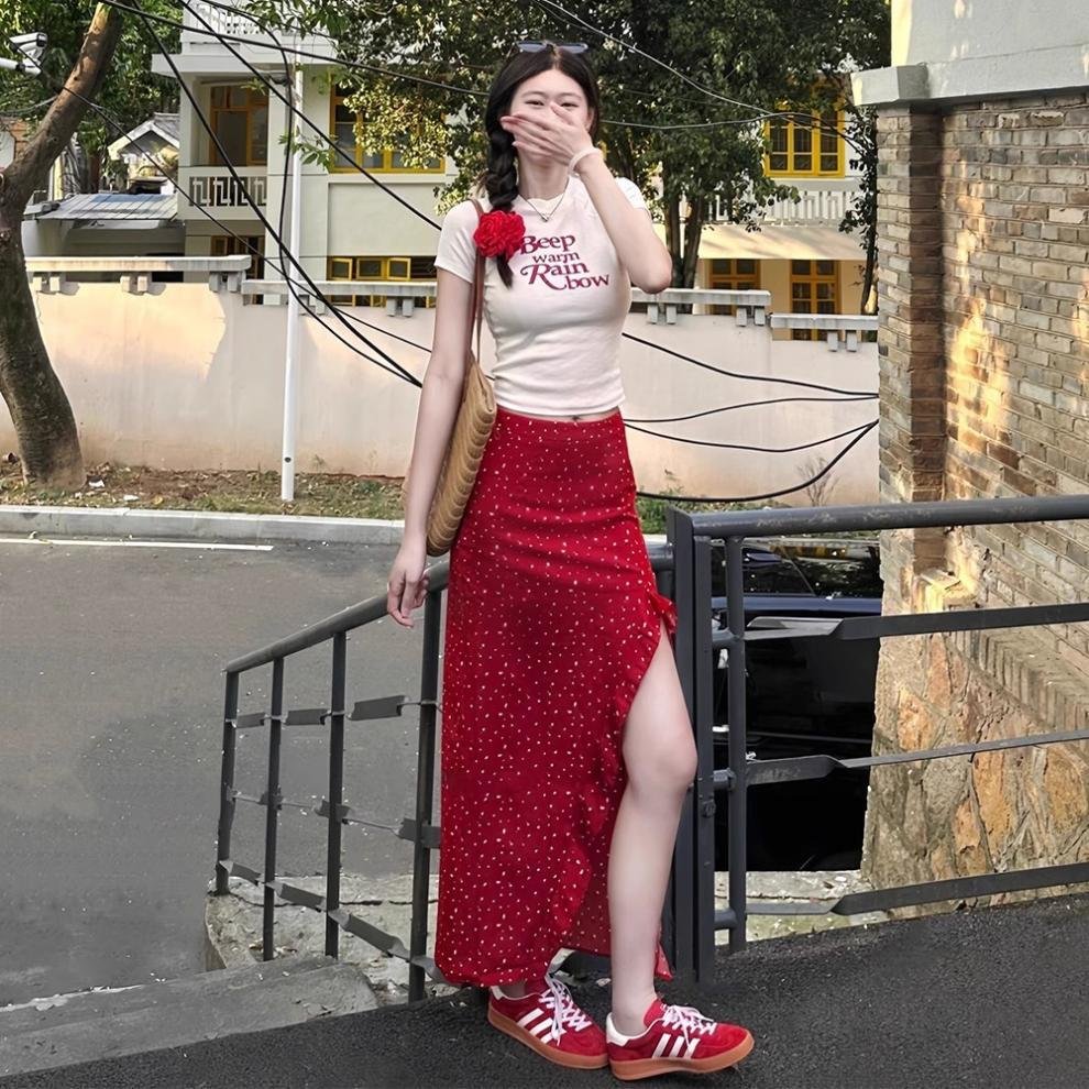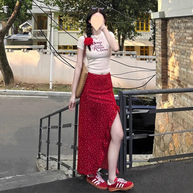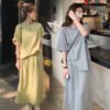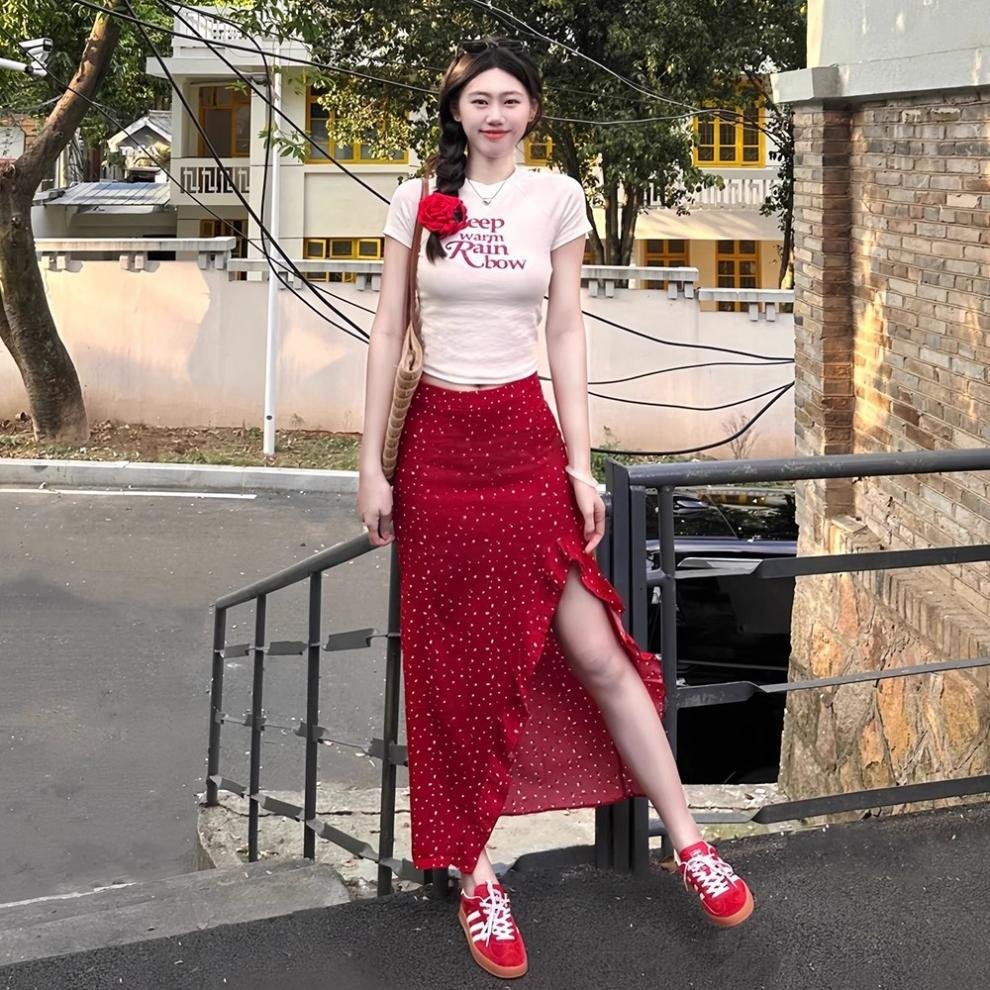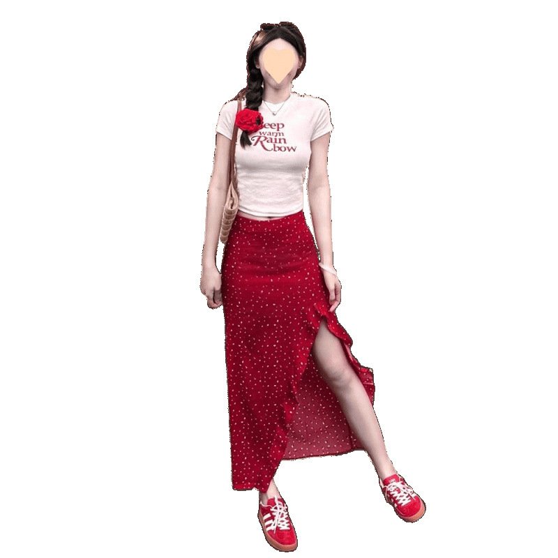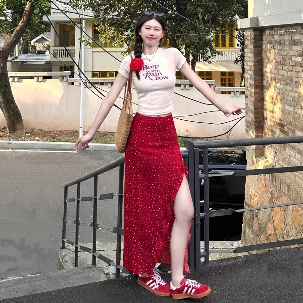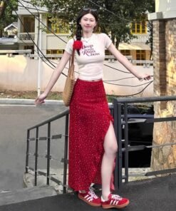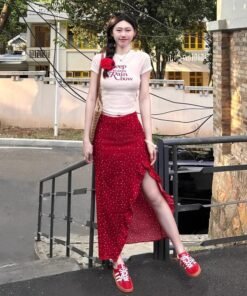 Vapetix S 【Recommended 55-68 kg】-XL 【Suggested 115-125 lbs】 Women’s 2025 Summer Korean Style Youthful Fitted Short-Sleeve T-Shirt Top and High-Waisted Slimming