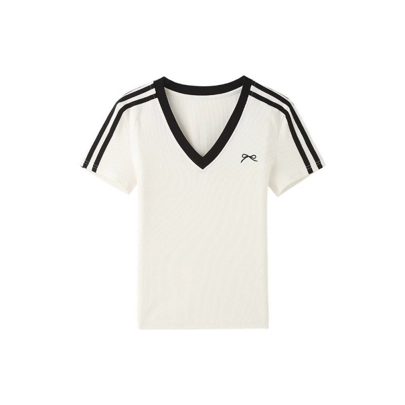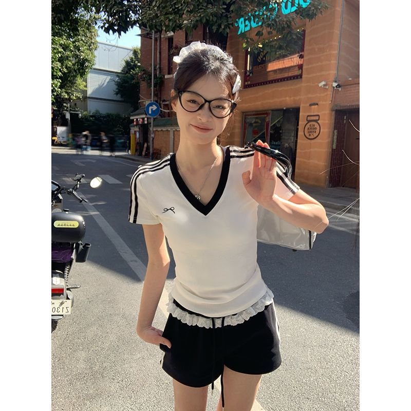 Vapetix S-2XL 【Bestselling Store】Sweet and Cool Butterfly Knot V-Neck Color-Coded Shoulder-Strap Short-Sleeve T-S
