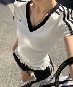 Schreibe die erste Bewertung für „Vapetix S-2XL 【Bestselling Store】Sweet and Cool Butterfly Knot V-Neck Color-Coded Shoulder-Strap Short-Sleeve T-S“ Antworten abbrechen