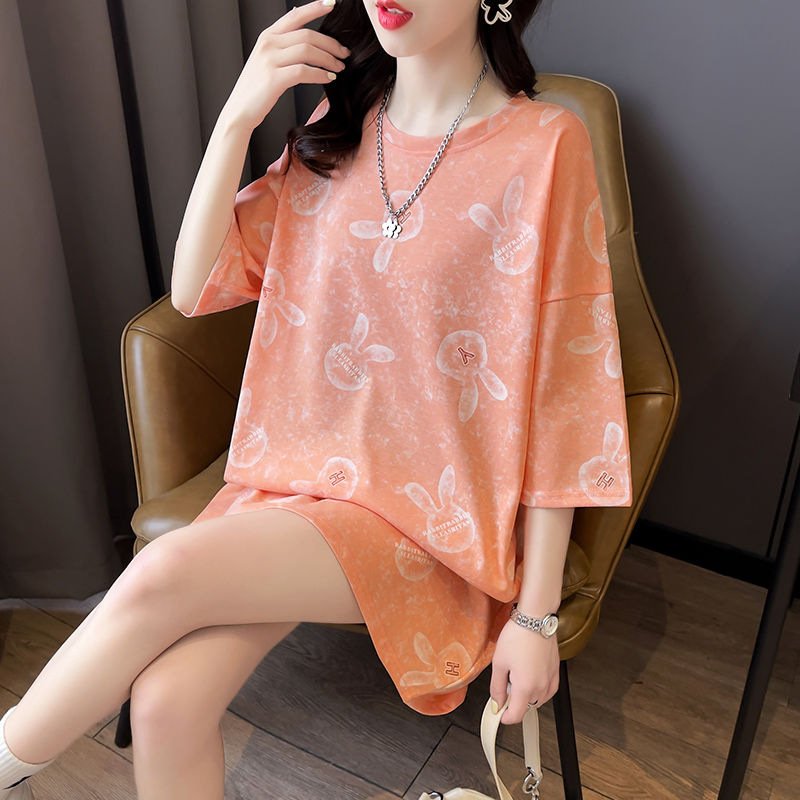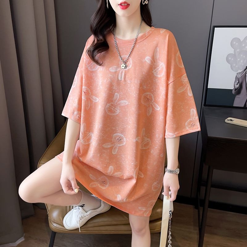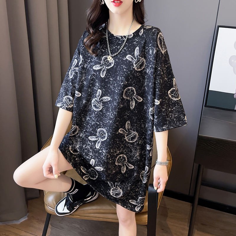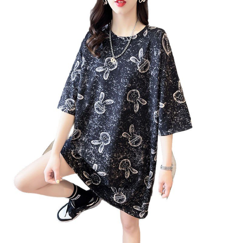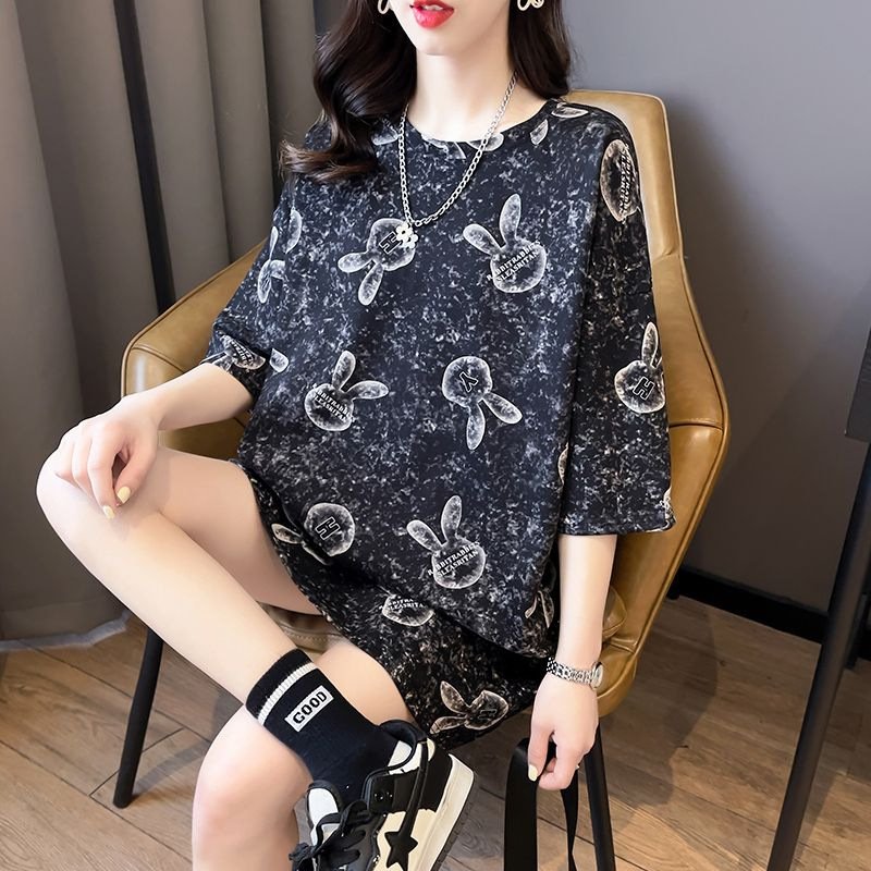 Vapetix S-2XL 95% Polyester 5% Spandex European Size Temu TikTok Medium Long Fashion Print Women’s T-Shirt