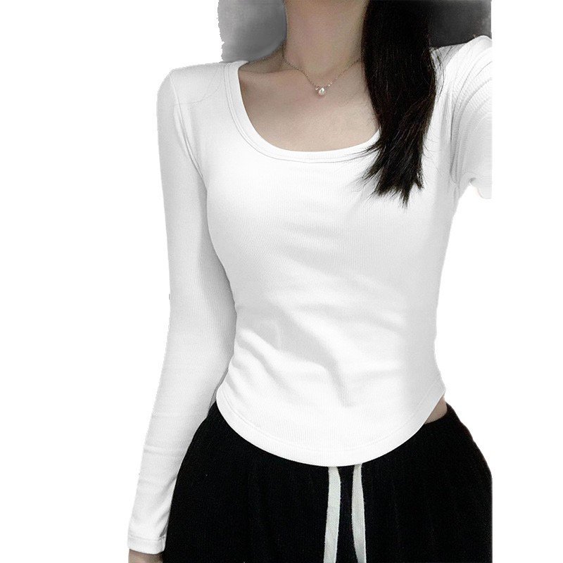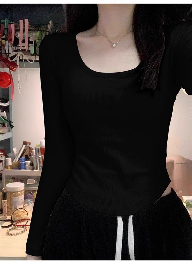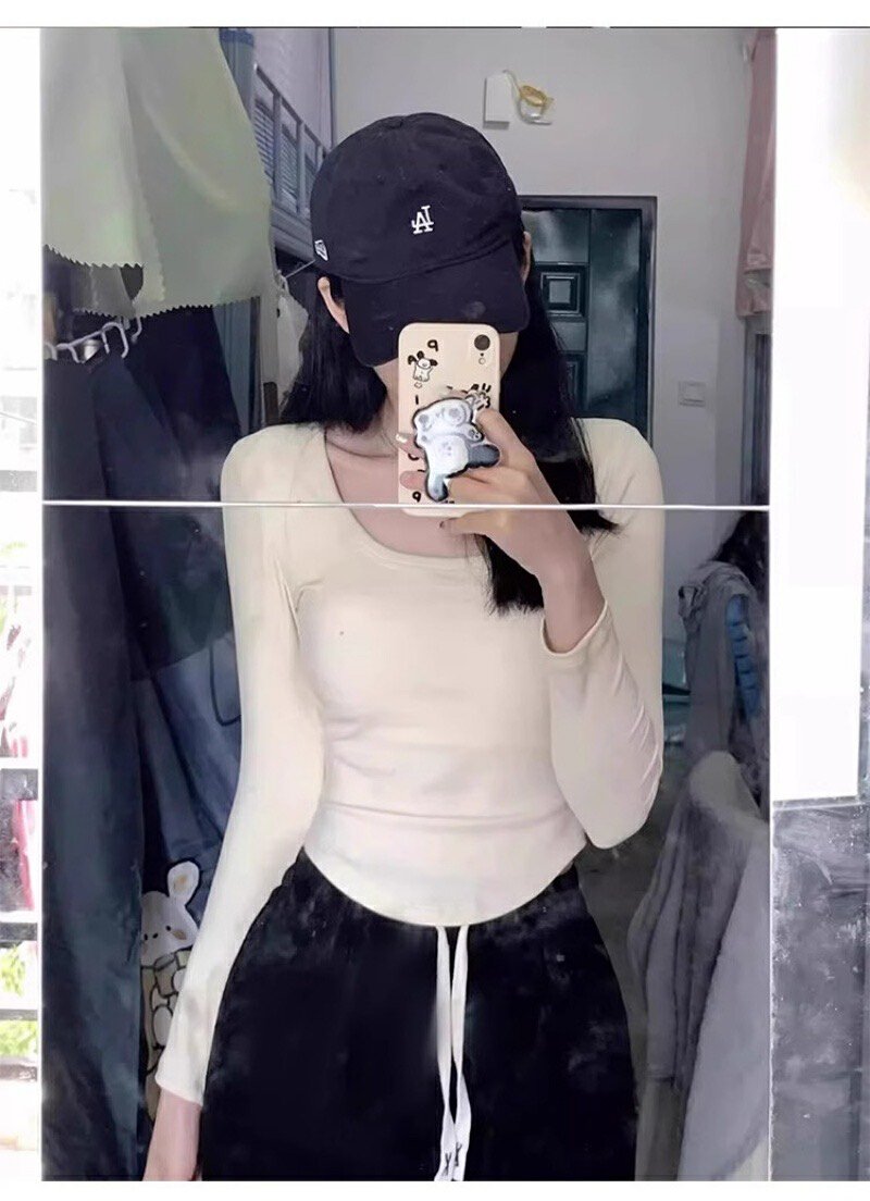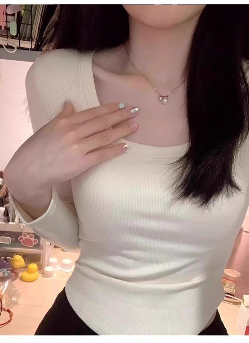 Vapetix S-2XL Druide square-neck long-sleeved T-shirt for women, autumn/winter Korean-style slim-fit bottoming sh