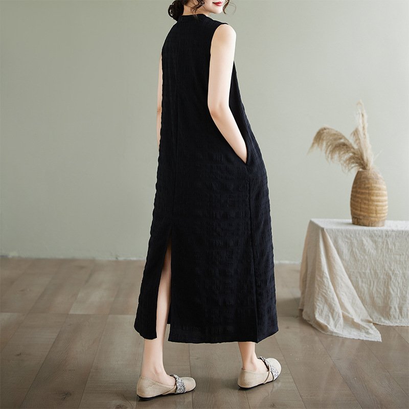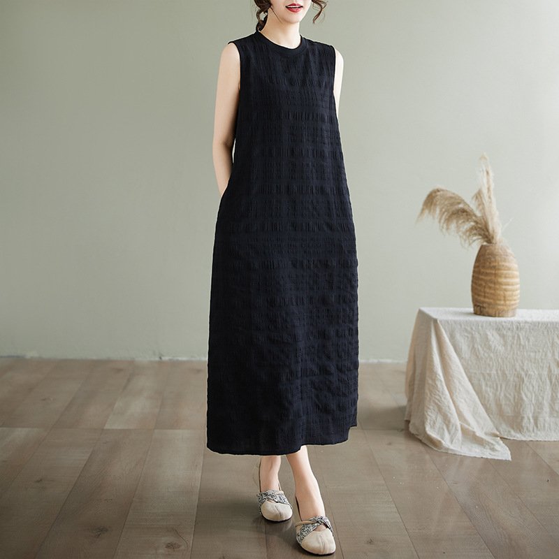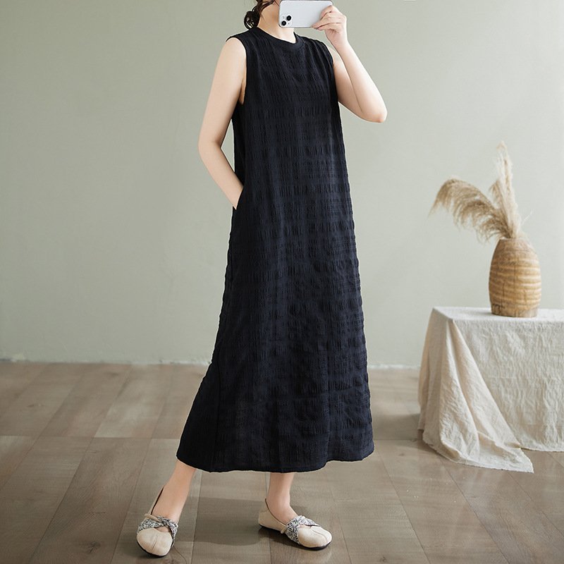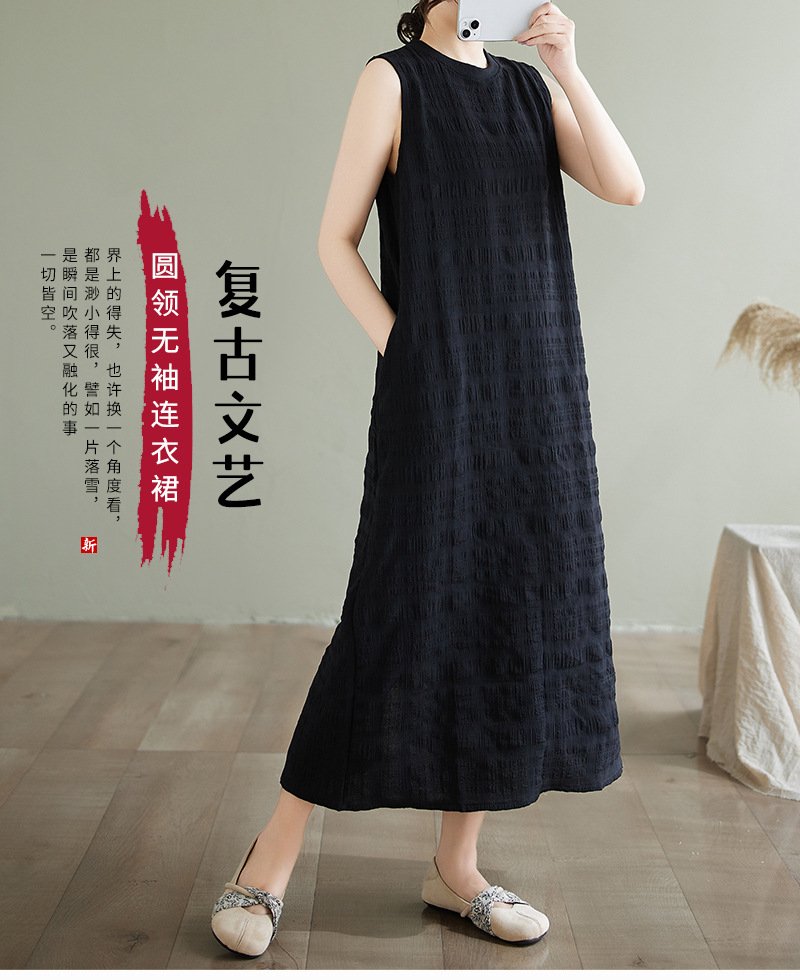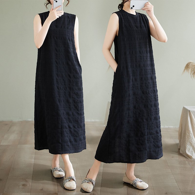 Vapetix S-2XL Elegant Round Neck Sleeveless Tank Dress Women’s 2025 Summer Loose Texture High-end Refined Long Dr