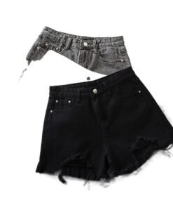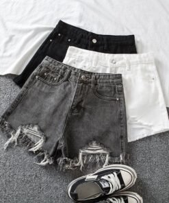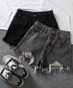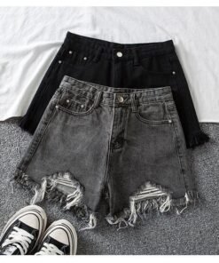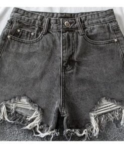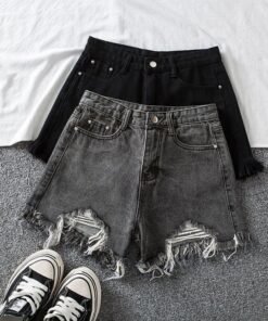 Vapetix S-2XL Gray denim shorts for women, summer tassel high-waisted frayed loose slimming student ripped Instag