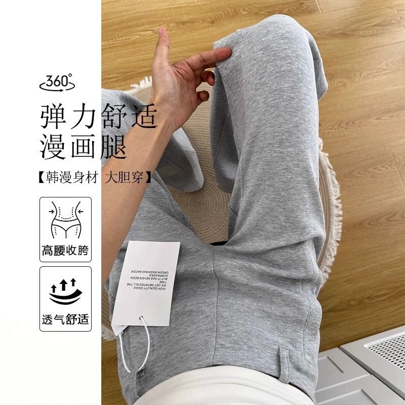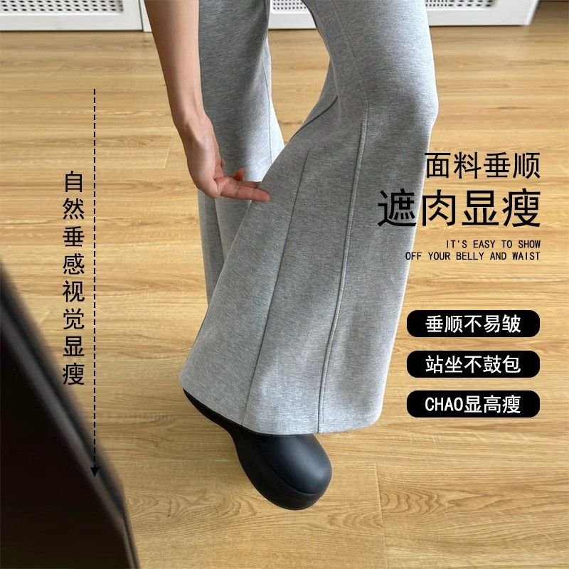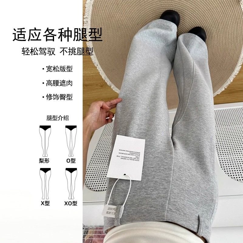 Vapetix S-2XL Gray flared sweatpants for women, 2025 autumn/winter new arrival, Korean-style wide-leg fleece-line
