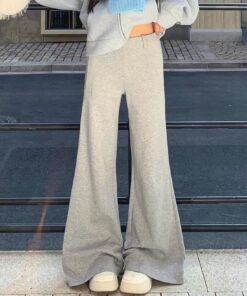 Vapetix S-2XL Grey Micro-Bootcut Women’s 2025 Autumn/Winter New Korean Style Wide Leg Fleece Lined Thick Sports C