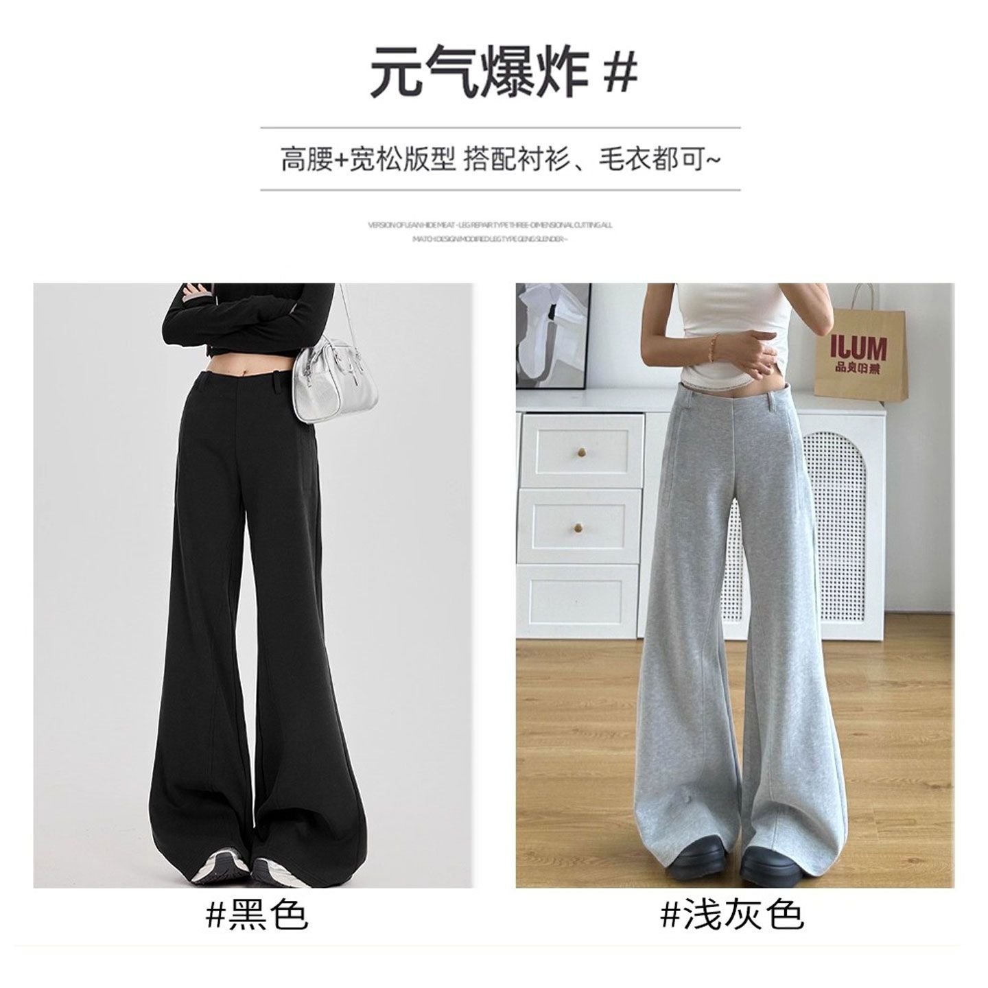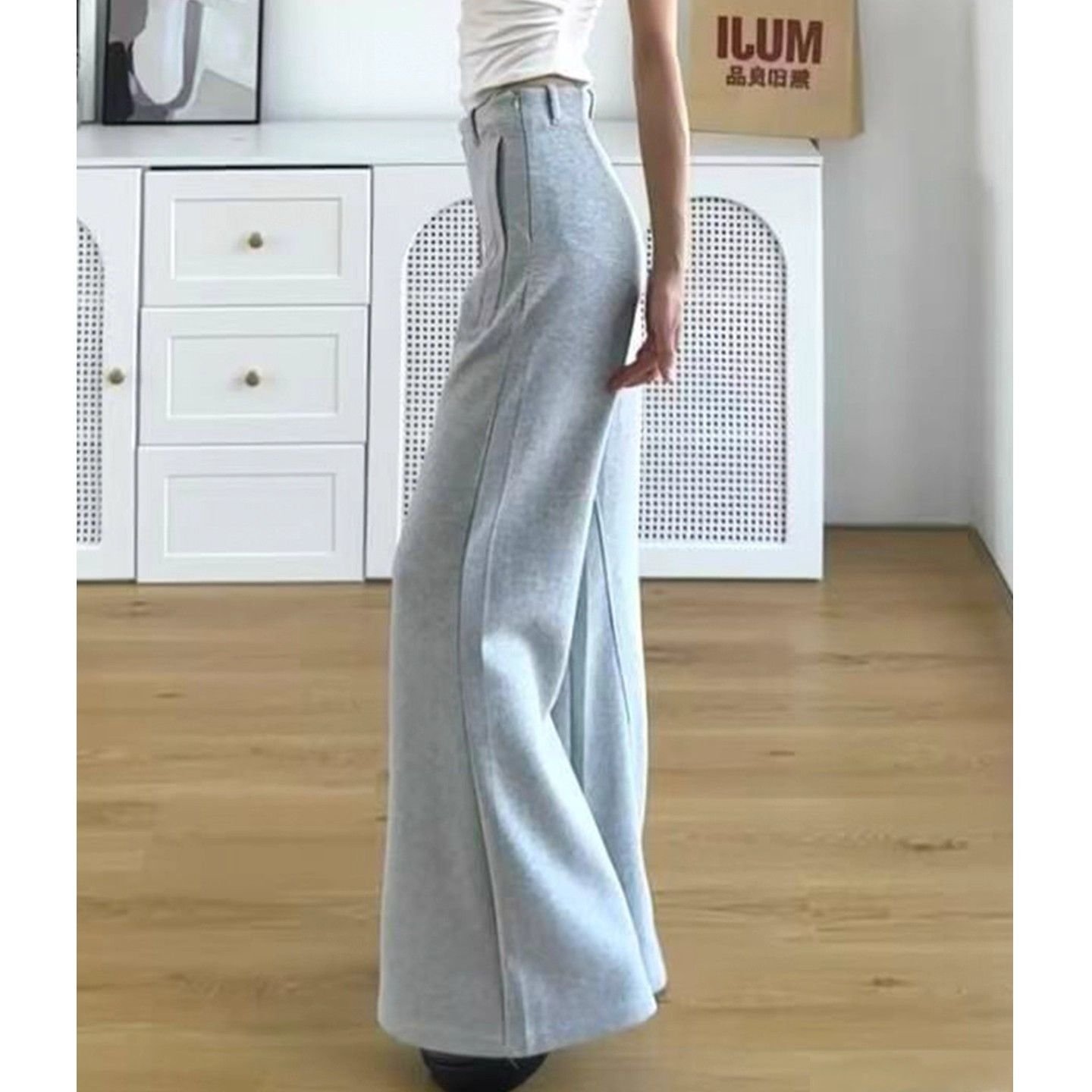 Vapetix S-2XL Grey Mini Wide Leg Women’s Pants 2025 Autumn/Winter New Korean Style Wide Leg Fleece Lined Thick Sp