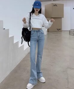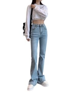 Vapetix S-2XL New Model Hoof High-Waisted Versatile Slimming 2024 Spring and Autumn Flowy Micro-Ripple Women’s Di