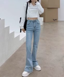 Vapetix S-2XL New Model Hoof High-Waisted Versatile Slimming 2024 Spring and Autumn Flowy Micro-Ripple Women’s Di