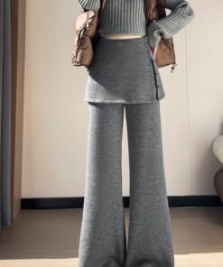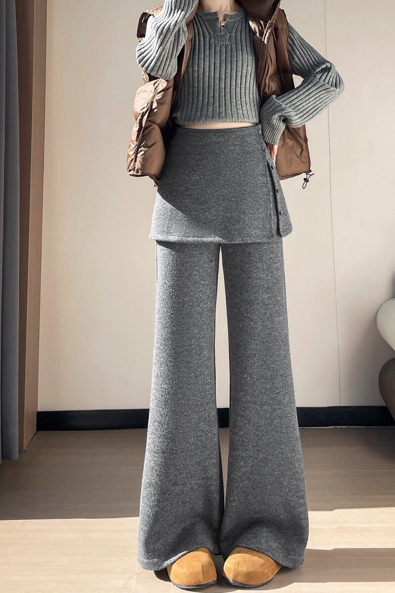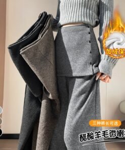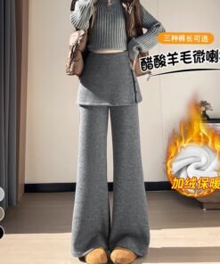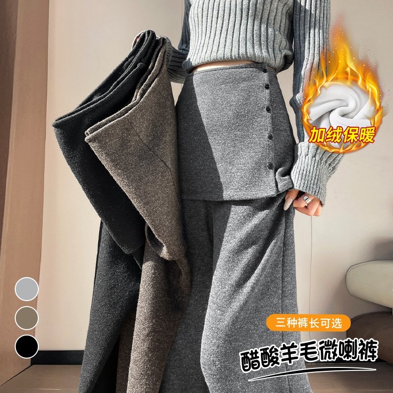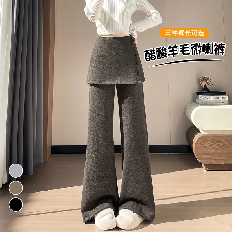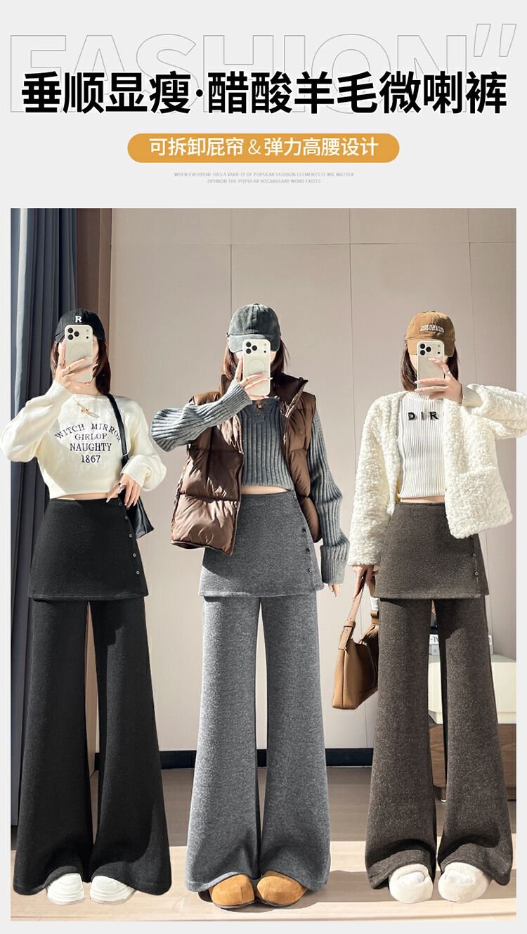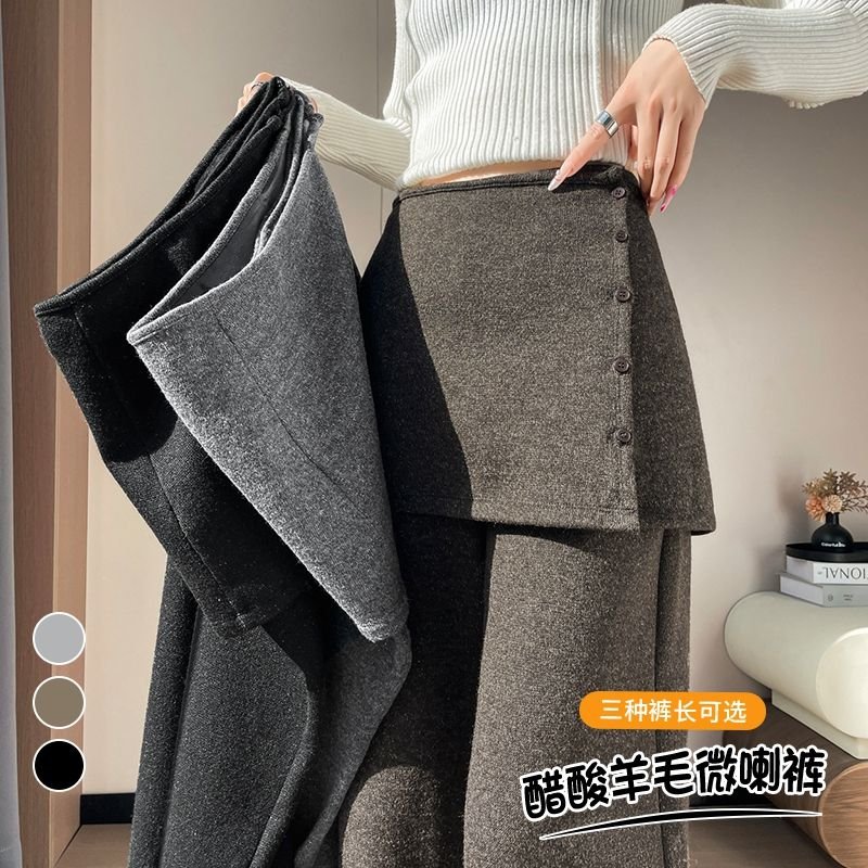 Vapetix S-2XL Photo-shoot 2025 Autumn/Winter New Fleece Acetate Wool Mini Skirt Wide-leg Pants Straight-leg Casua