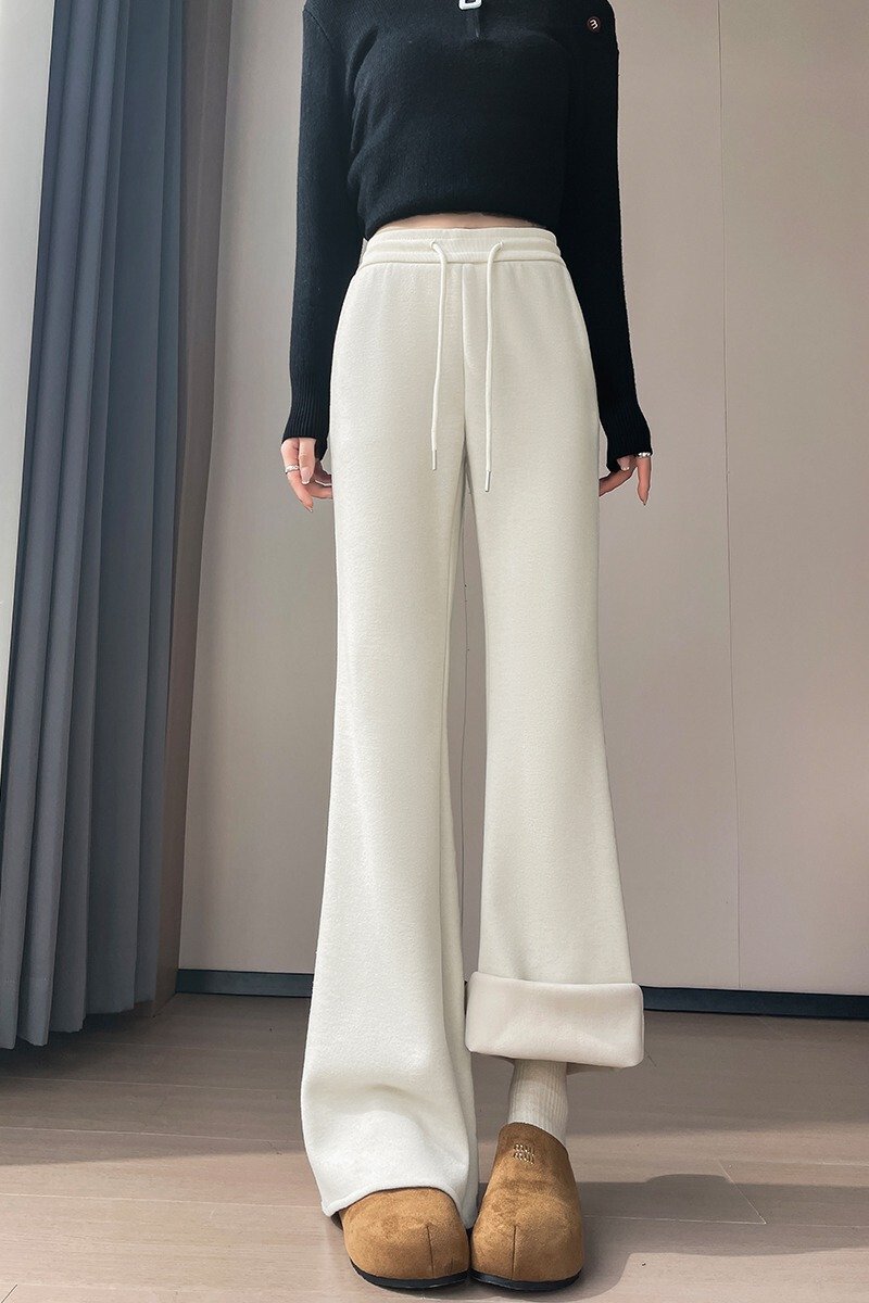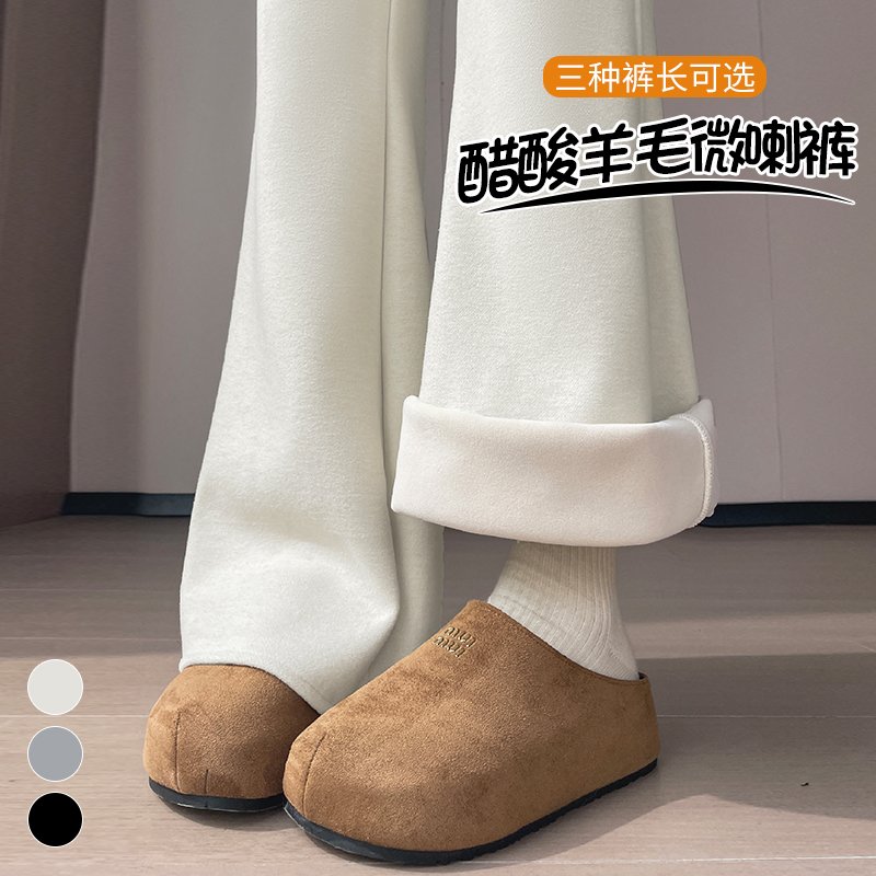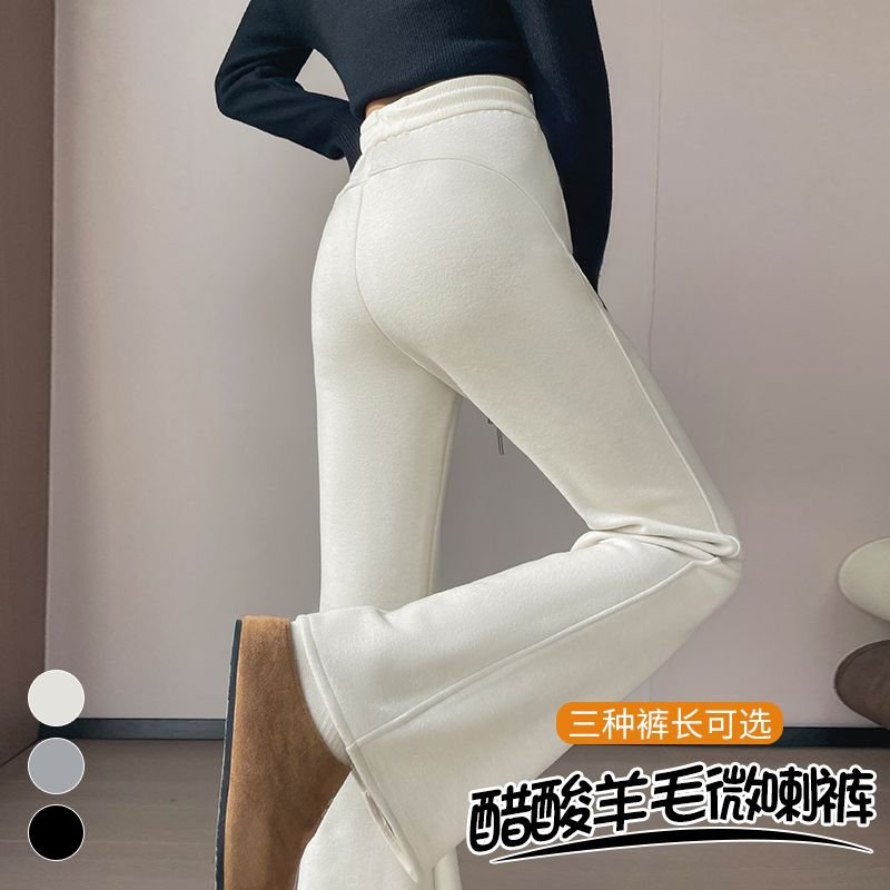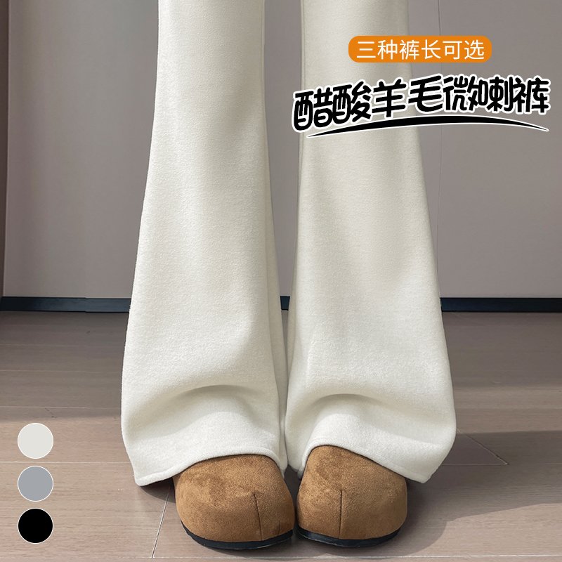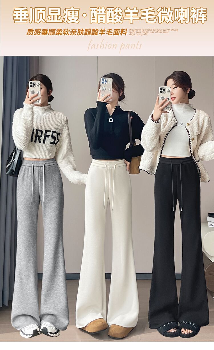 Vapetix S-2XL Photographed 2025 Autumn/Winter New Fleece Acetate Wool Pants with Mini Flare Cashmere High-Waist C