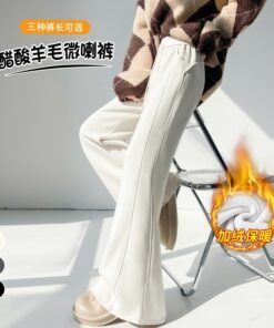 Vapetix S-2XL Photographed 2025 Autumn/Winter New Warm Fleece Bell Bottom Floor-Length Women’s Pants Children’s A