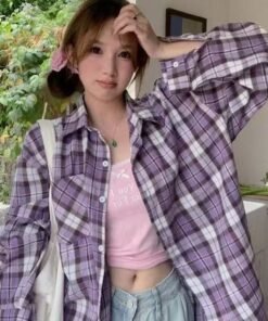 Schreibe die erste Bewertung für „Vapetix S-2XL Retro Purple Check Shirt American Spring Design 2025 Unique Loose Long Sleeve Blouse Top Women’s Ou“ Antworten abbrechen