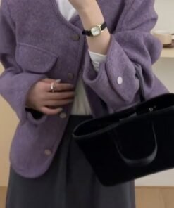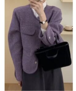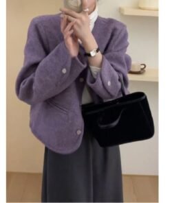 Vapetix S-2XL Women’s 2025 Autumn/Winter Purple Wool Coat with a Chic and Sophisticated Little Black Dress Style,