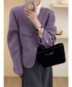 Vapetix S-2XL Women’s 2025 Autumn/Winter Purple Wool Coat with a Chic and Sophisticated Little Black Dress Style,