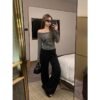 Vapetix S-2XL Women’s 2025 Summer New Retro Light Blue Striped Casual Pants Wide Leg Loose Slimming Straight Leg