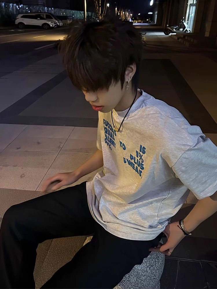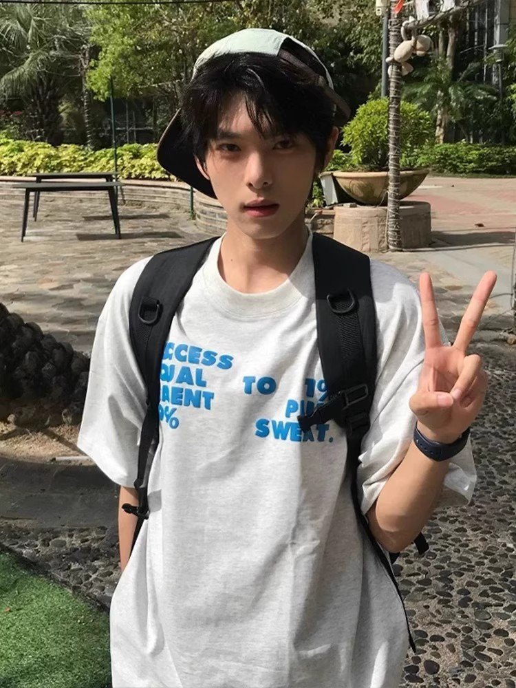 Vapetix S-3XL 【Tmall/Recommended】Heavyweight 230g Double-Spun Cotton Combed Tight SWEA Letter Print Short-Sleeve