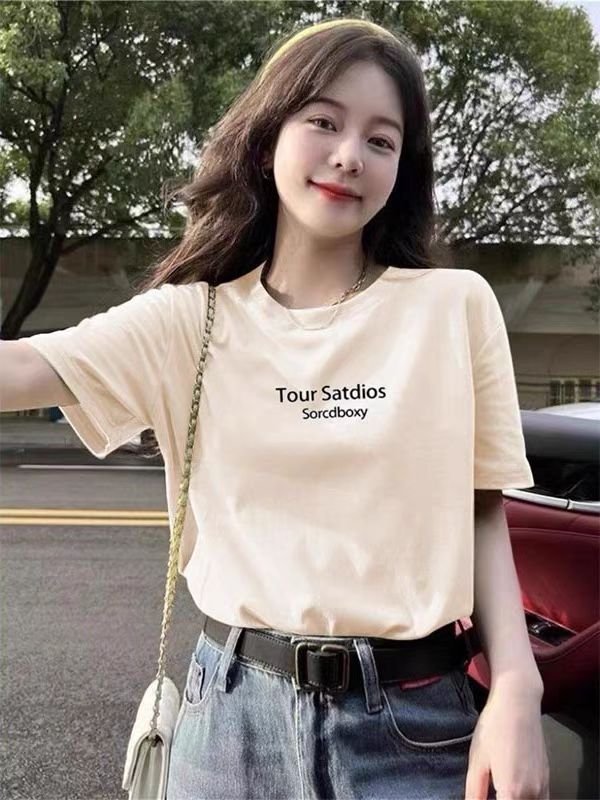Vapetix S-3XL 200g combed close-milled spun pure cotton interlining summer relaxed shoulder print short-sleeve T-