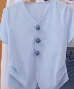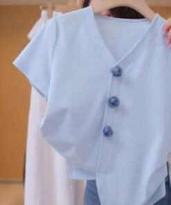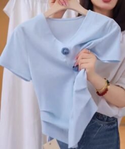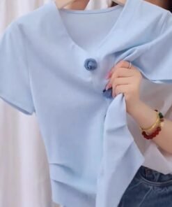 Vapetix S-3XL 40 pieces of Cool Cotton Fashion V-neck Short-sleeve T-shirts for Women – Summer 2025 New Chiffon S