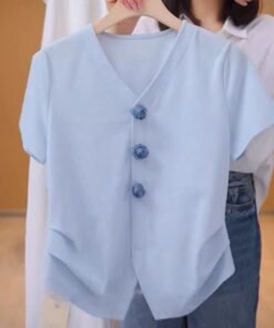 Vapetix S-3XL 40 pieces of Cool Cotton Fashion V-neck Short-sleeve T-shirts for Women – Summer 2025 New Chiffon S