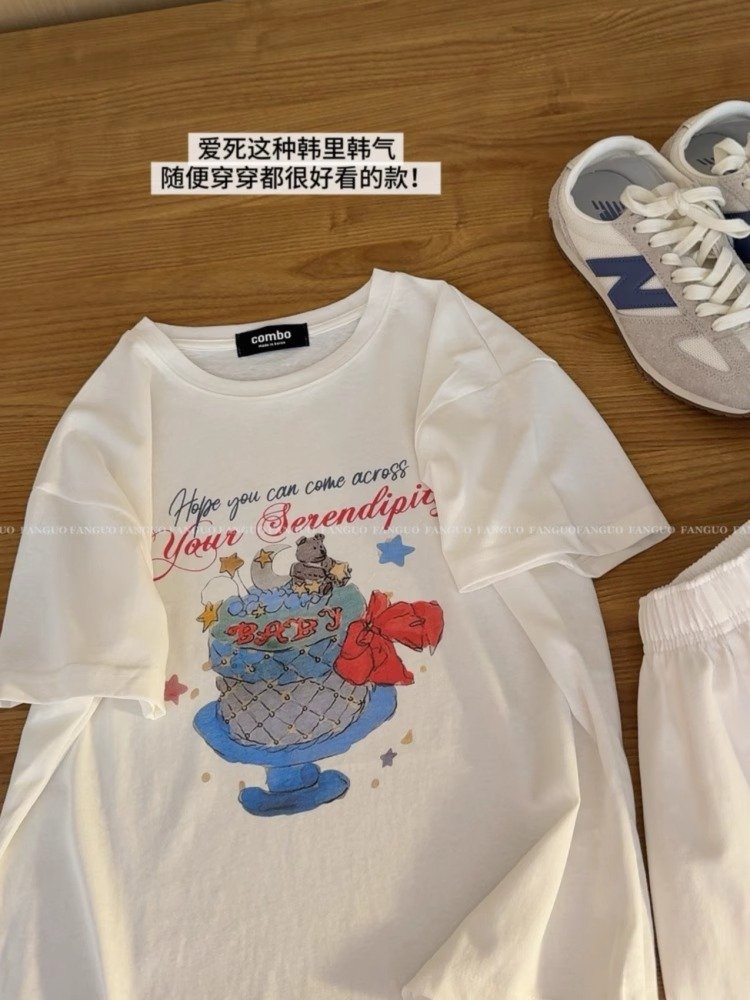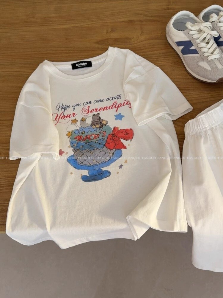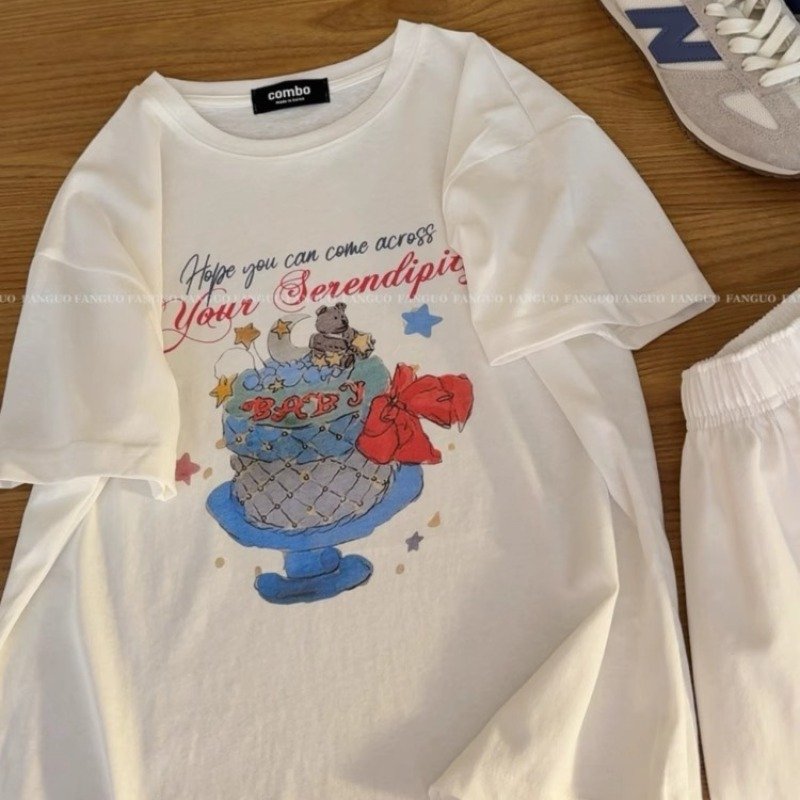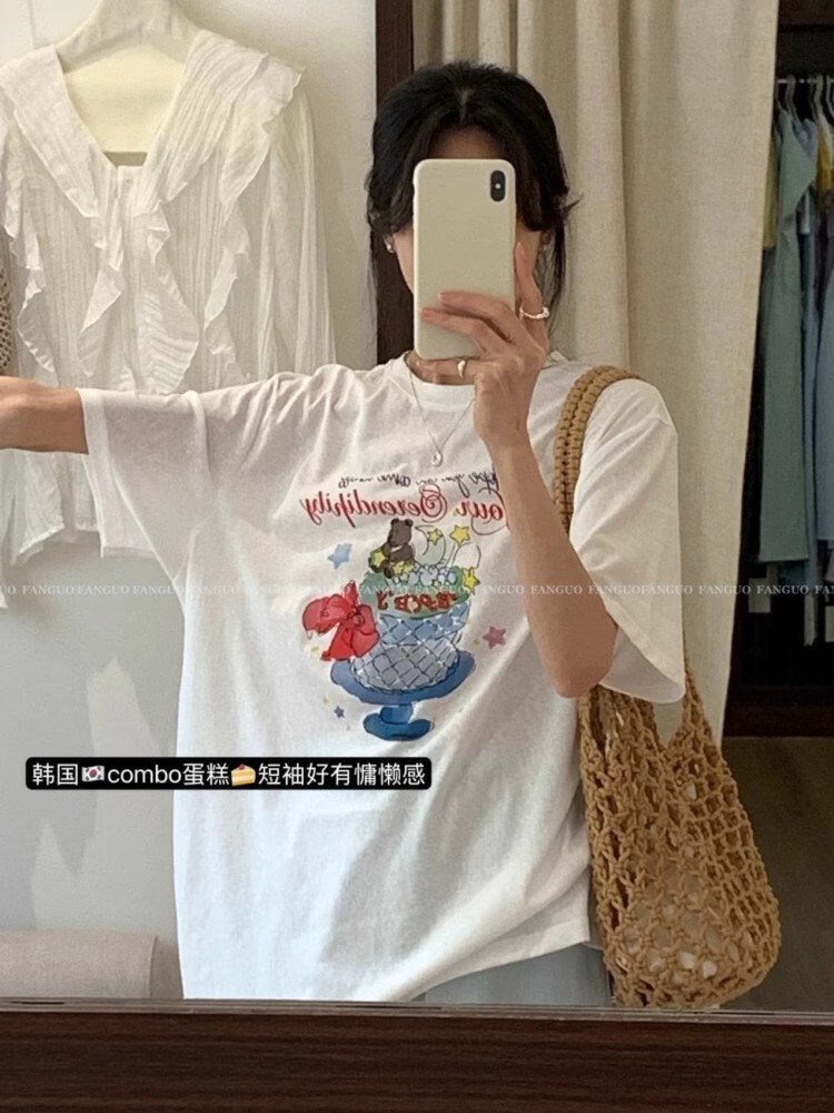 Vapetix S-3XL Cotton Korean Chic Summer New Short Sleeve T-Shirt for Women Loose Plus Size Printed Half Sleeve St