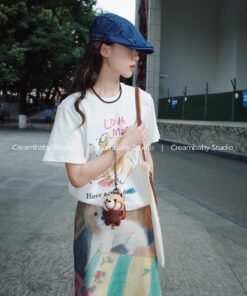 Vapetix S-3XL Korean Foreign Trade 21 Cotton – 210g 100% Cotton Summer Casual Loose Cartoon Print Short Sleeve T-