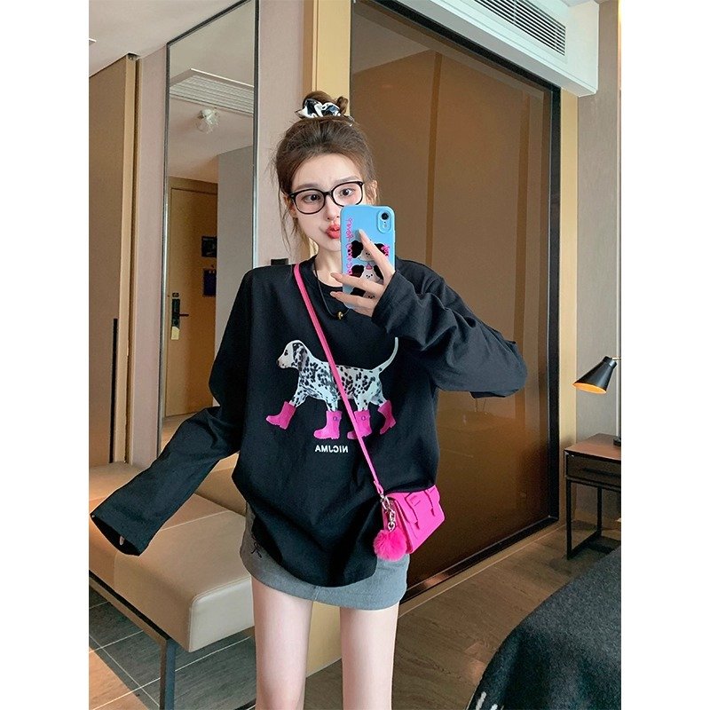 Vapetix S-3XL Korean-style long-sleeved women’s T-shirt with a design sense, relaxed and loose casual versatile t