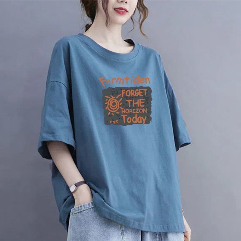 Vapetix S 80-100 pounds-3XL 180-200 lbs 200 pounds plus-size cotton crew neck short-sleeve new loose printed outerwear summer versatile hal