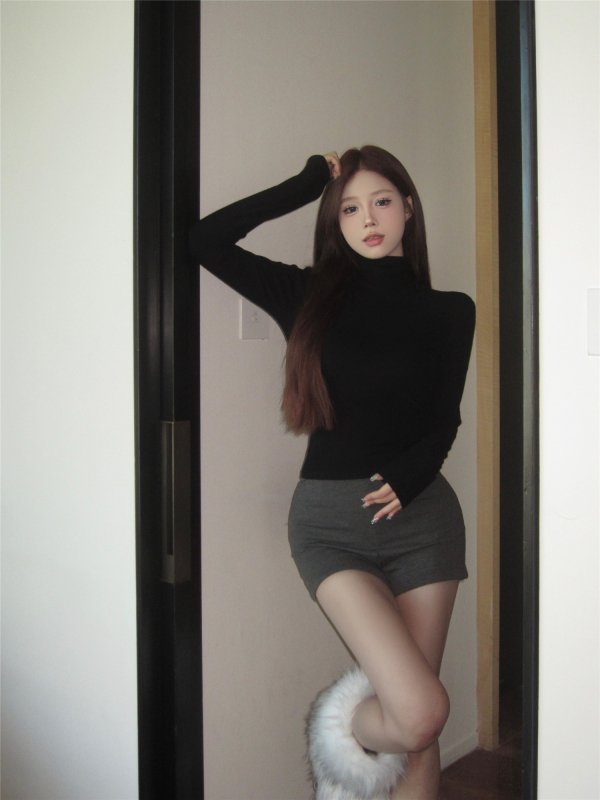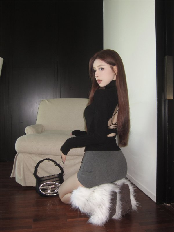 Vapetix S-L Actual shot ~ Back view killer black high collar German velvet slim fit hot girl leaking back botto