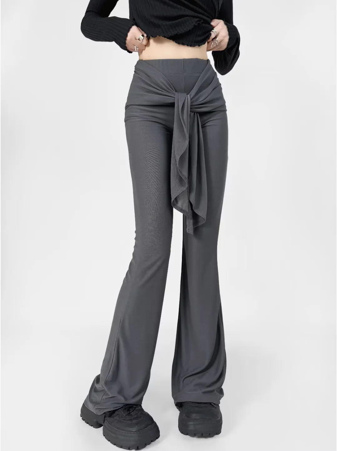 Vapetix S-L American Spice Girl Fake Two-piece Double-layer Lace-up Hip Pants Women’s Spring and Autumn Slimmin