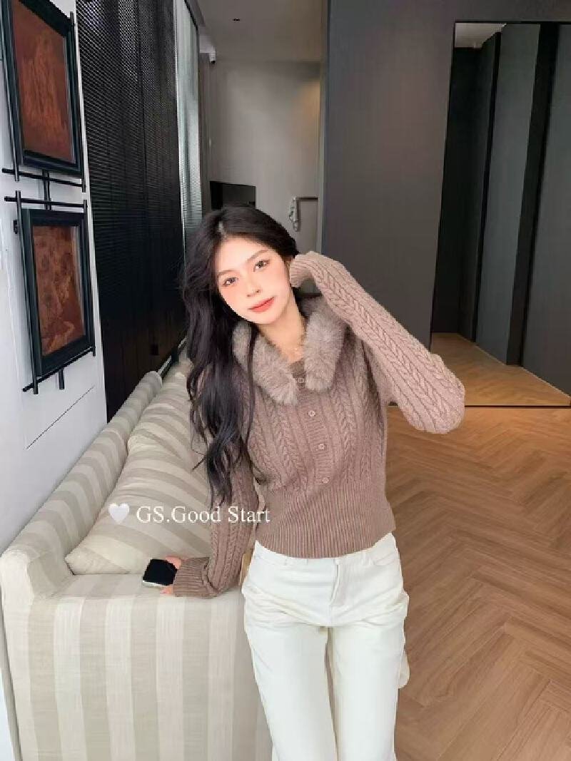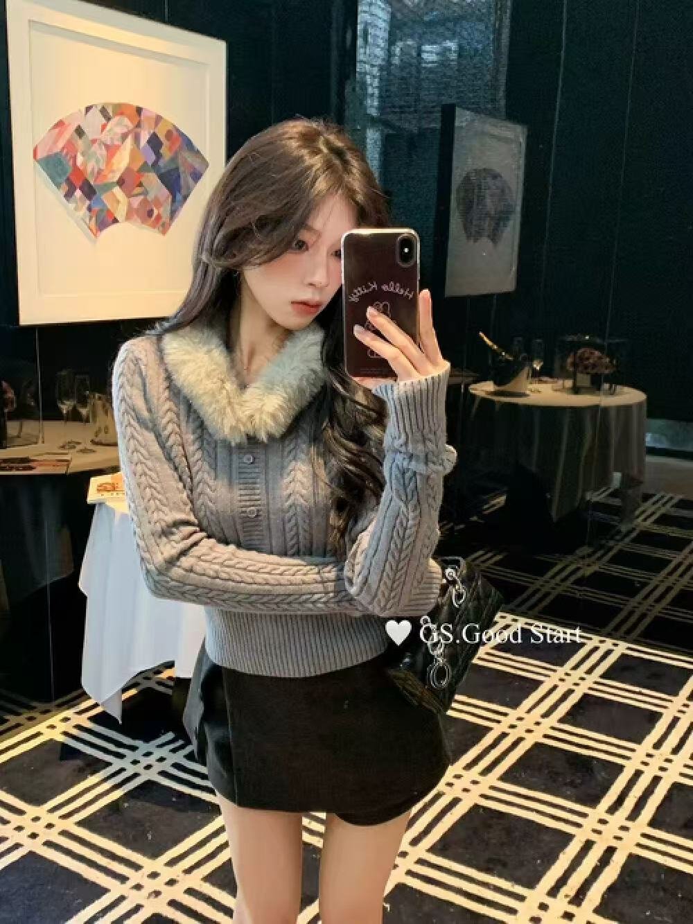 Vapetix S-L GSGOOD START Blogger’s Outfit: Autumn/Winter Retro Pure Desire Plush Hooded Knit Sweater with Detac
