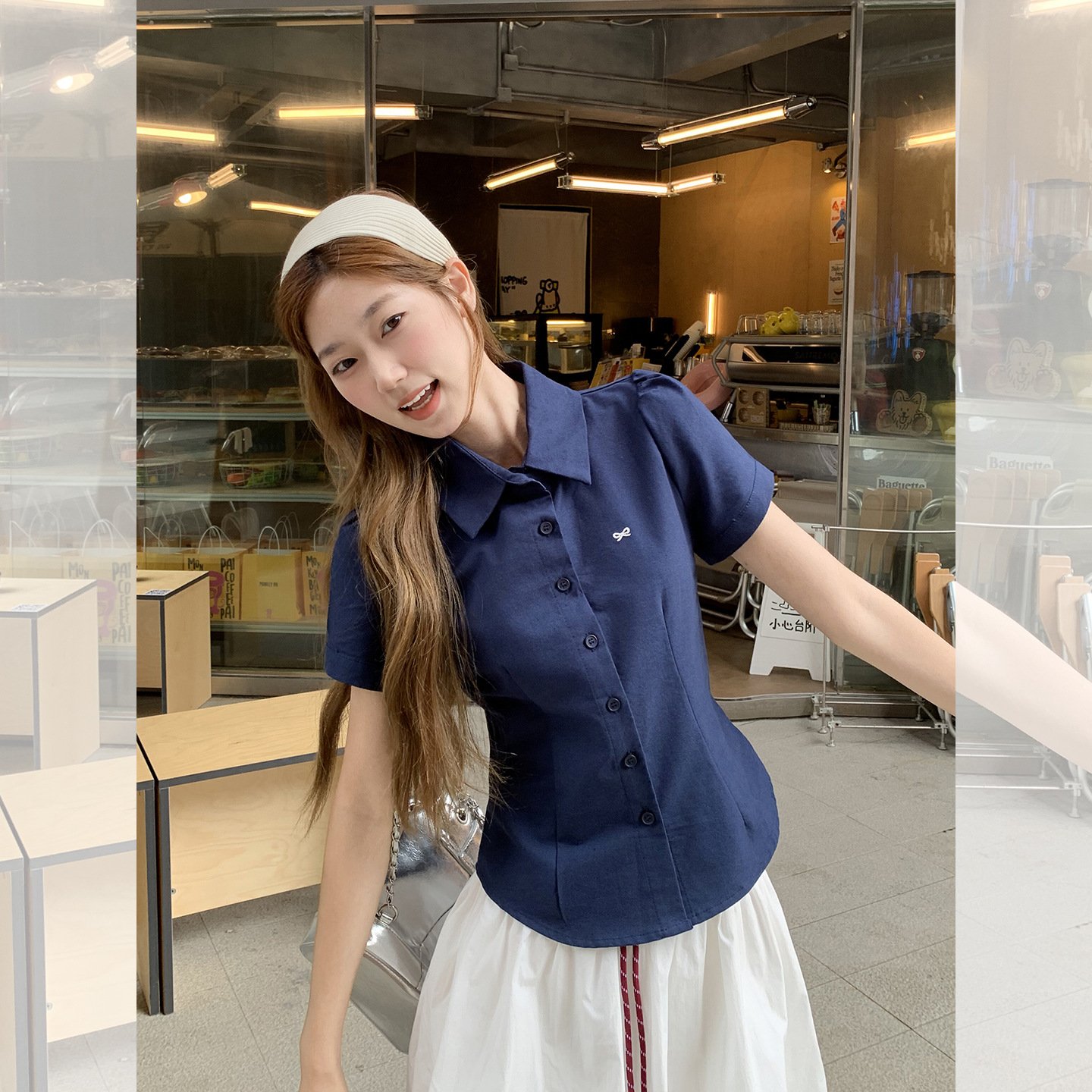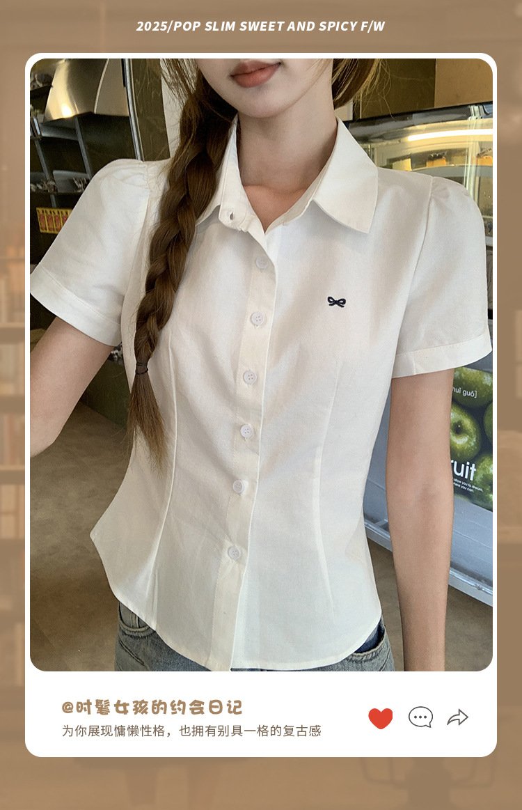 Vapetix S-L Korean-style sweet embroidery bow polo collar short-sleeved T-shirt for women, summer super cute un