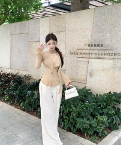 | Color | Khaki Wide-Leg Pants, Sunset Yellow Top |