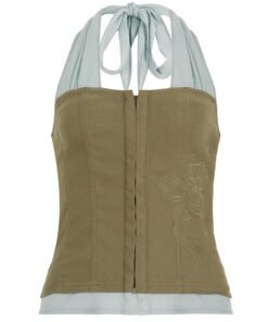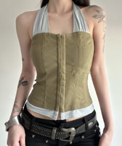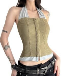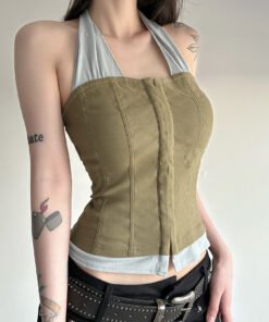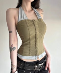 Vapetix S-L Vintage workwear style off-the-shoulder slimming waistline spliced fake two-piece vest women’s new
