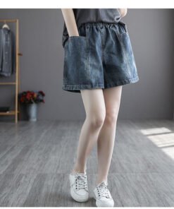 Vapetix S (Recommended within 100 pounds)-3XL (Recommended weight: 160-180 lbs) Summer Korean-style denim shorts for women, large pockets, loose and slimming, youthful and versati