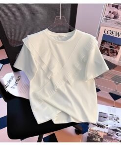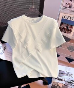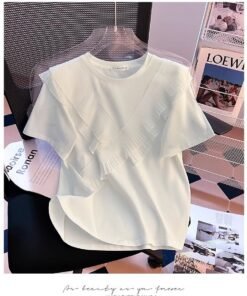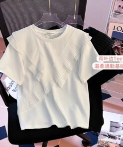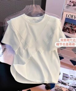 Vapetix S suggests [70-85 pounds]-Suggestion for L: [100-120斤] 2025 Summer Women’s Design-Featured Ruffle-Trim Short-Sleeve T-Shirt: Loose-Fit, Plus-Size, Trendy,