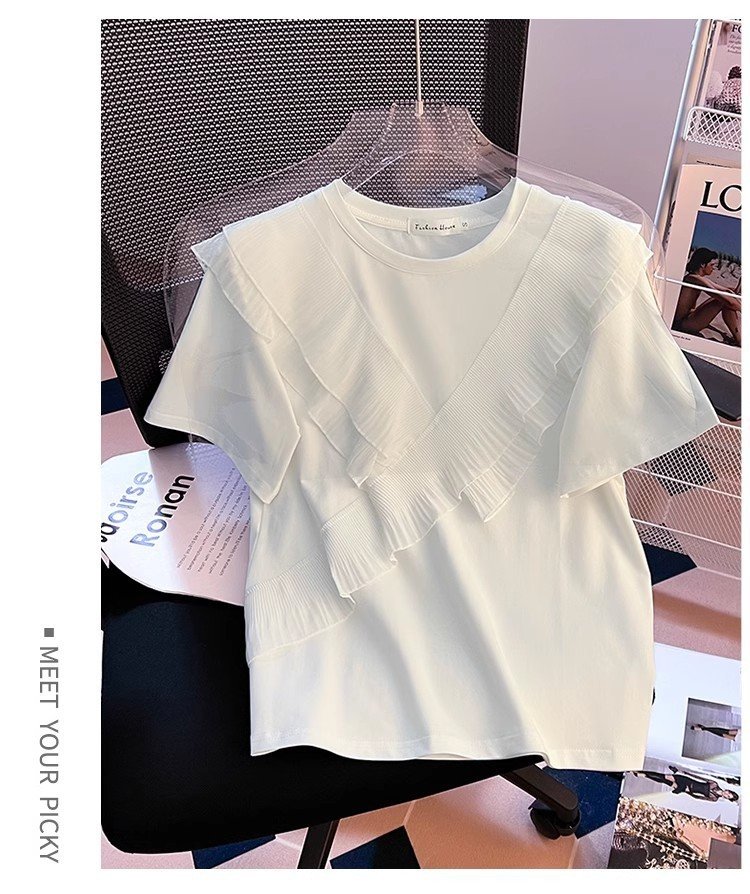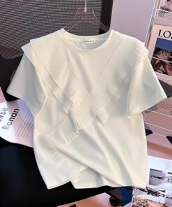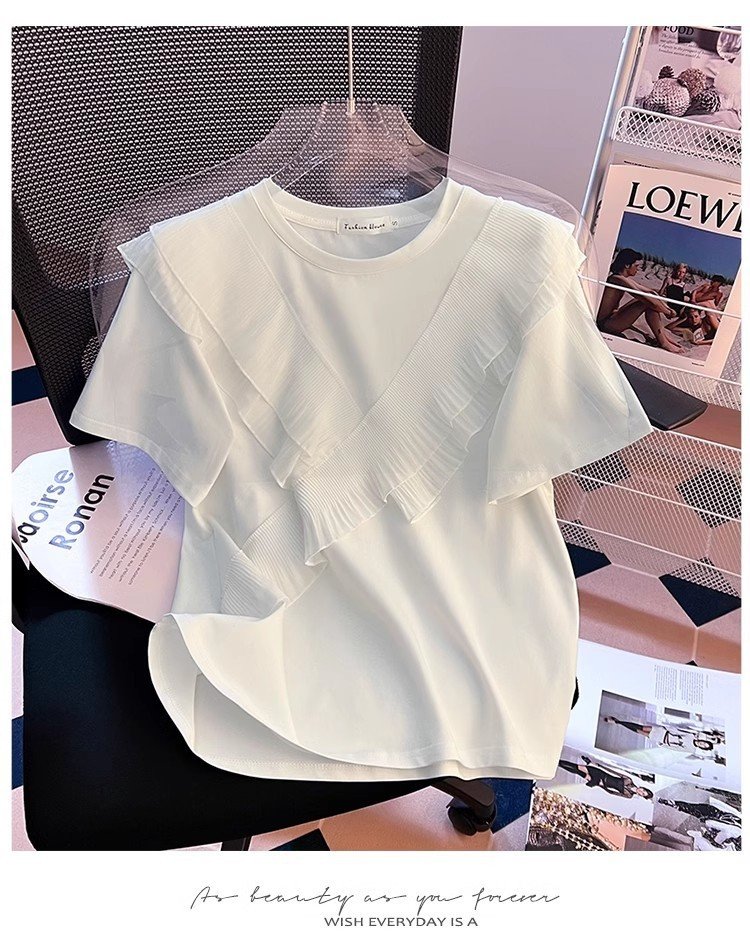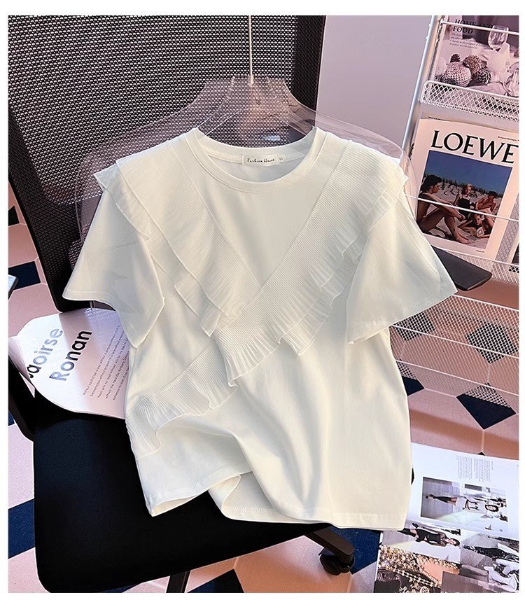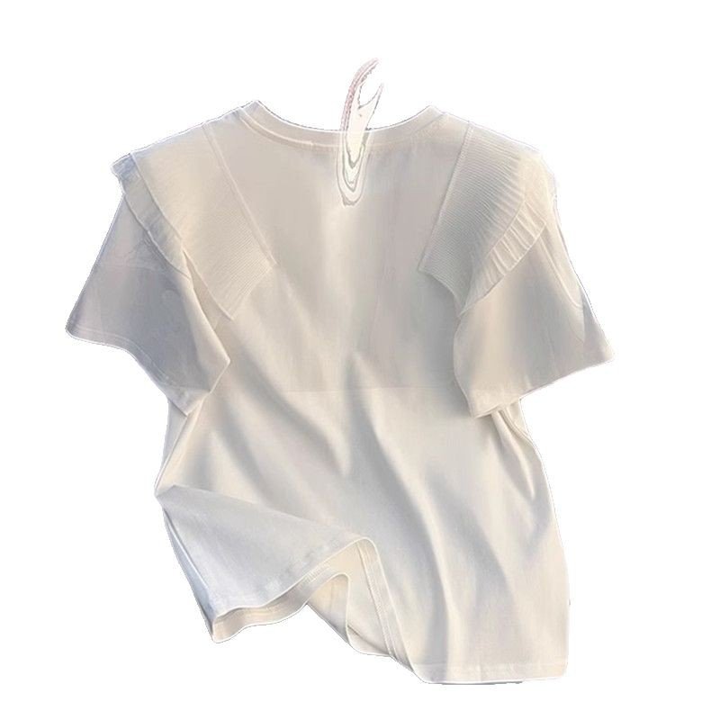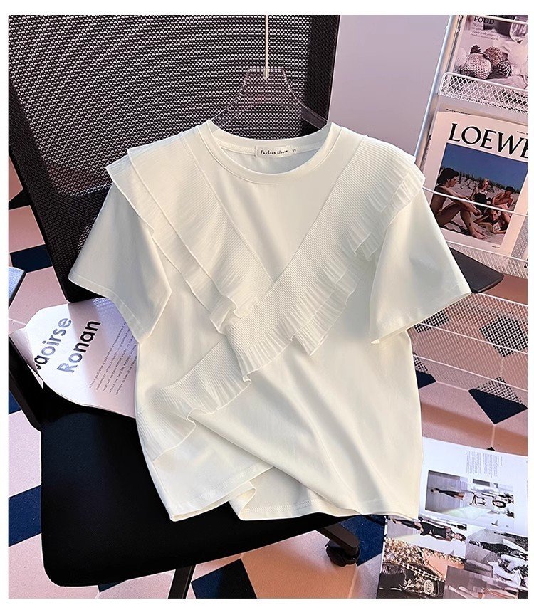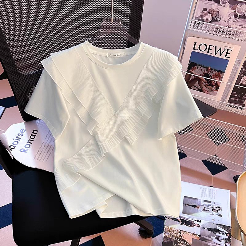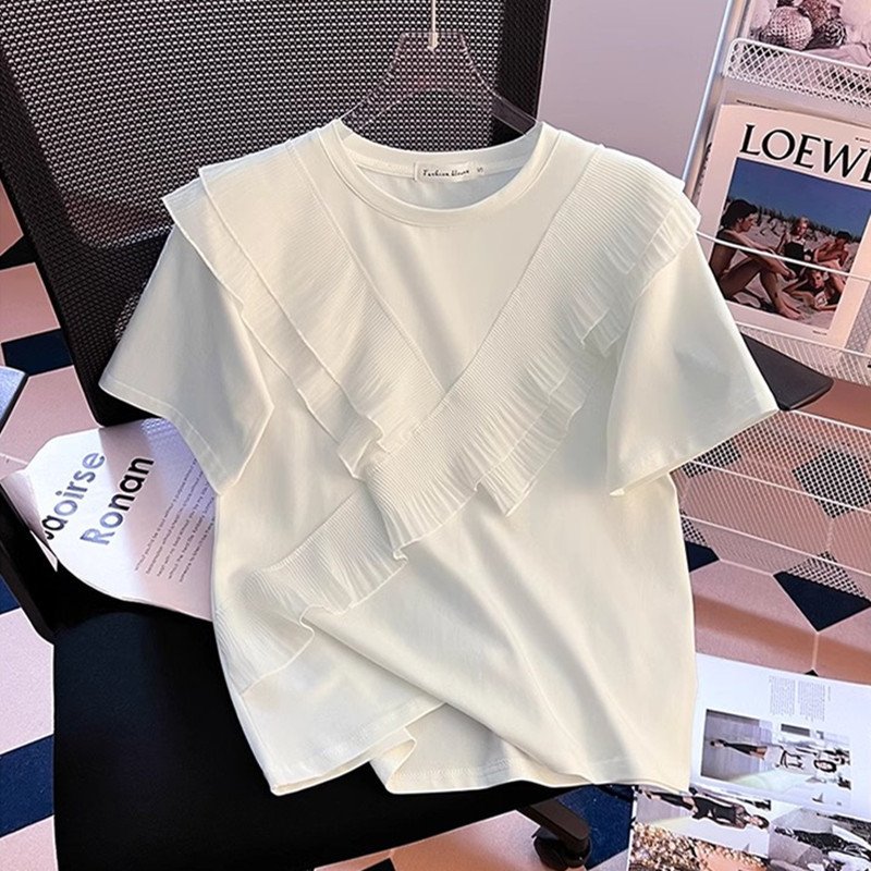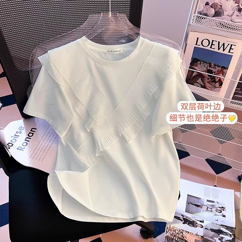 Vapetix S suggests [70-85 pounds]-Suggestion for L: [100-120斤] 2025 Summer Women’s Design-Featured Ruffle-Trim Short-Sleeve T-Shirt: Loose-Fit, Plus-Size, Trendy,