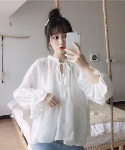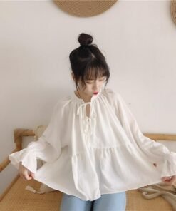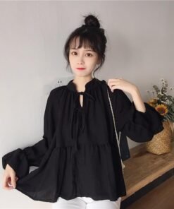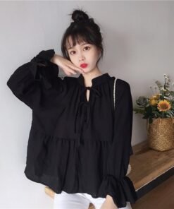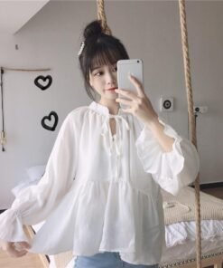 Vapetix S suggests 75-90 pounds-Size 3XL recommended for 130-145 lbs 【5,800 people collected】Summer New Korean Loose Strap Collar Bell Sleeve Babydoll Top Versatile Top