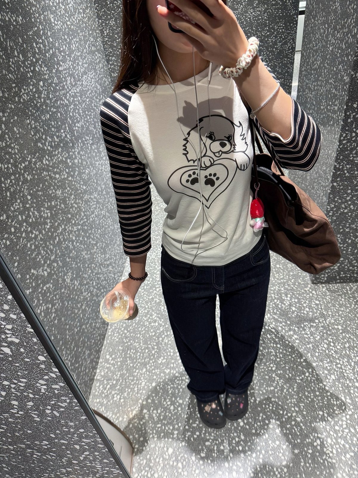 Vapetix S-XL 【21% Pure Cotton】Dog Illustration Print Sleeveless Striped T-shirt Slim Fit Versatile Slimming Crew