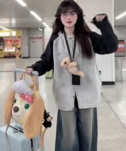 Vapetix S-XL 2025 Autumn Korean Leisure Style Color Block Knit Cardigan for Women – Design-Focused Loose and Ver